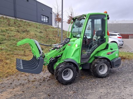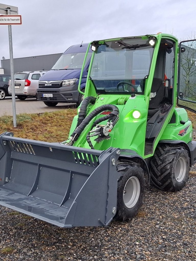 Folgende Anbaugeräte Stehen direkt zur Verfügung: Palettengabel, Schaufel, Erdbohrer, Sichelmäher, Kehrmaschine, Greifer uvm.